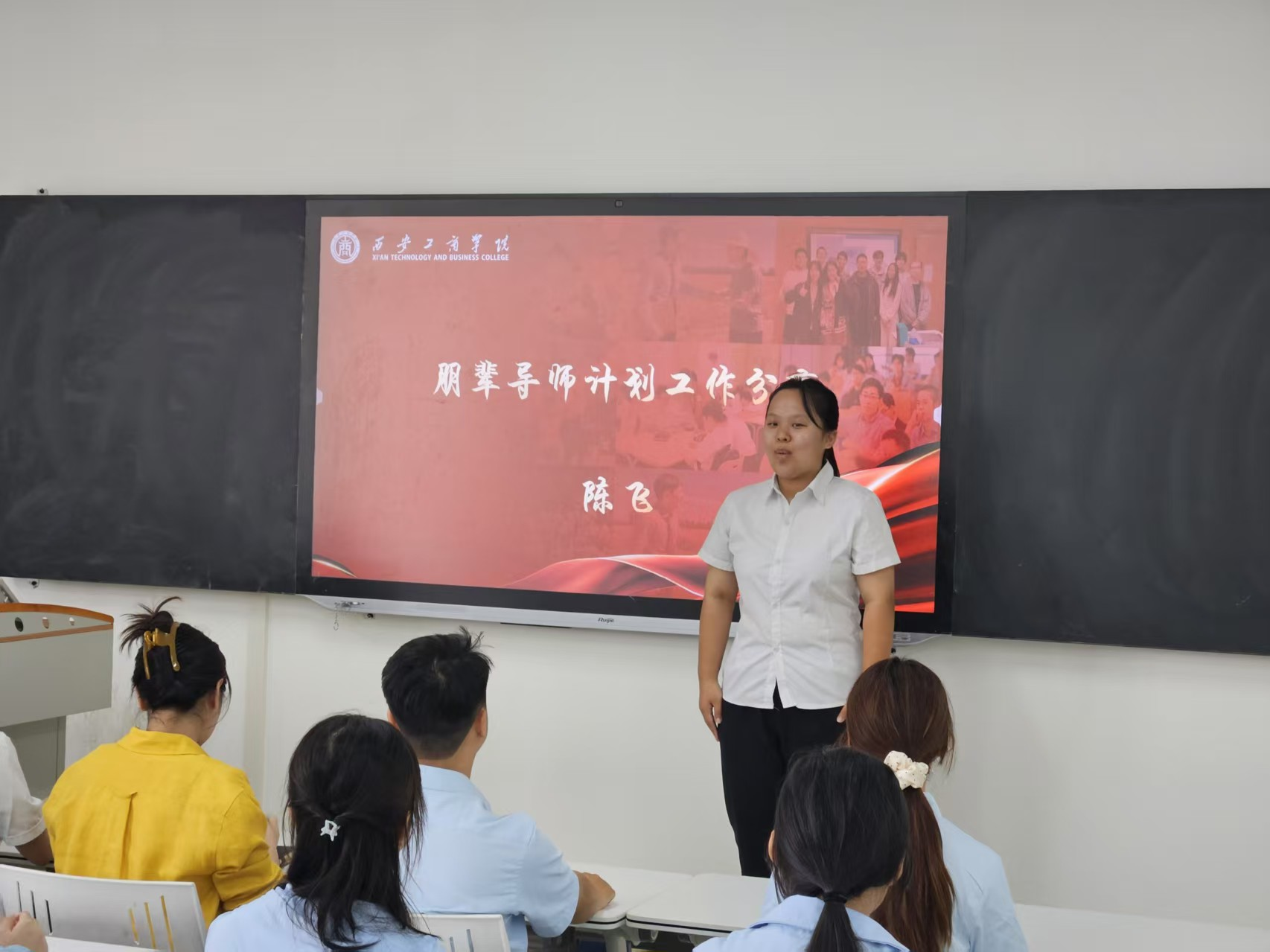 随后,朋辈导师陈飞结合自身经验进行分享。她跳出传统工作讲解的框架,以“交朋友”的情感脉络为核心切入点,生动阐述了朋辈导师职责在迎新环节中的重要作用。她提到,朋辈导师不仅是新生校园生活的“指引者”,更应成为他们初入大学时的“同行者”,通过真诚的情感联结与耐心的陪伴,帮助新生更快消除陌生感、适应新环境,让迎新工作更具温度与感染力。