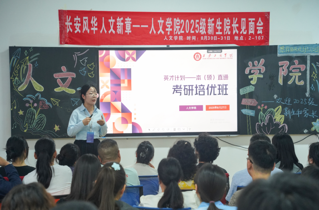会议伊始,人文学院院长回顾了学院自2007年人文社科系成立以来的发展历程。他指出,作为西安工商学院最早设立的二级学院,人文学院始终坚持以育人为本,致力于培养具有人文素养和实践能力的高素质人才。院长还通过往届优秀毕业生的实例,说明学院在校企合作、实习实践、就业推进等方面的有效举措,希望家校携手,共同助力学生实现全面成长与职业发展。