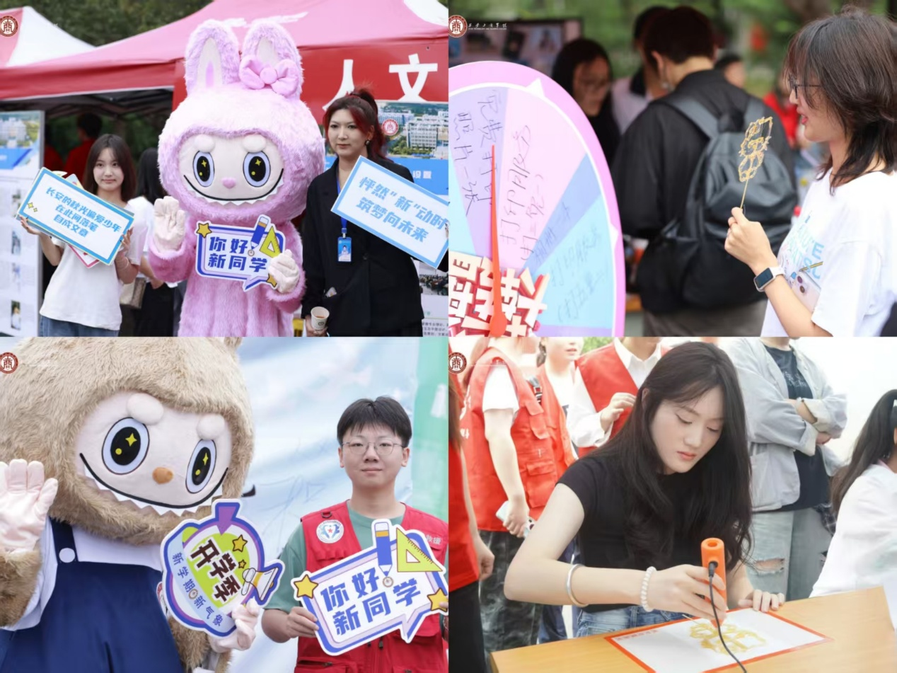 此外,学院将传统与时尚合二为一,设置了诸多互动环节。手工糖画摊位吸引众多同学驻足,琥珀色的糖浆在巧手翻飞间变成各色图案,学生在亲手体验中拉近了彼此的距离;人气“顶流”拉布布(Labubu)展区同样青春洋溢,吸引众多同学前来拍照打卡。这些精心设计,悄然化解了新生的拘谨,也让校园充满欢快与温暖的氛围。