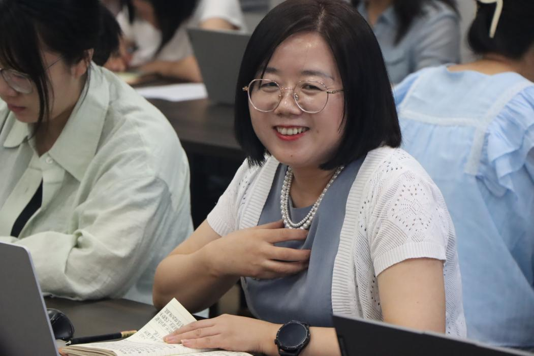 副教授相银歌老师结合自己所教授的古代汉语课程谈起,分享了自己对“教育家精神”的理解。她谈到,首先要贯彻“敢啃硬骨头”的坚守,古代汉语是照进当下的智慧。其次是要有“搭桥梁”的担当,做好教育中的解经人和摆渡人。相老师认为,十余年的从教经验,使自己明白当代教师要以师为责,传文化之火,教育家精神不是遥不可及的口号,而是每时每刻对教育的坚守。