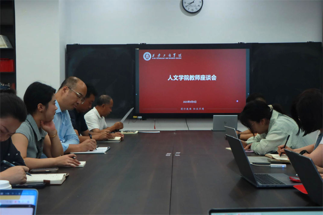 2025年9月9日上午,人文学院在泾野书院召开了“庆祝第41个教师节”座谈会。人文学院院长,党总支副书记、副院长原朝阳,党总支书记、副院长王园园以及全体无教学任务的专任教师参会。本次会议围绕着“以教育家精神铸魂强师,谱写教育强国建设华章”主题展开,与会领导和教师热烈交流、畅谈心得,共同探讨教育家精神的时代内涵与实践路径。本次座谈会由人文学院院长主持。