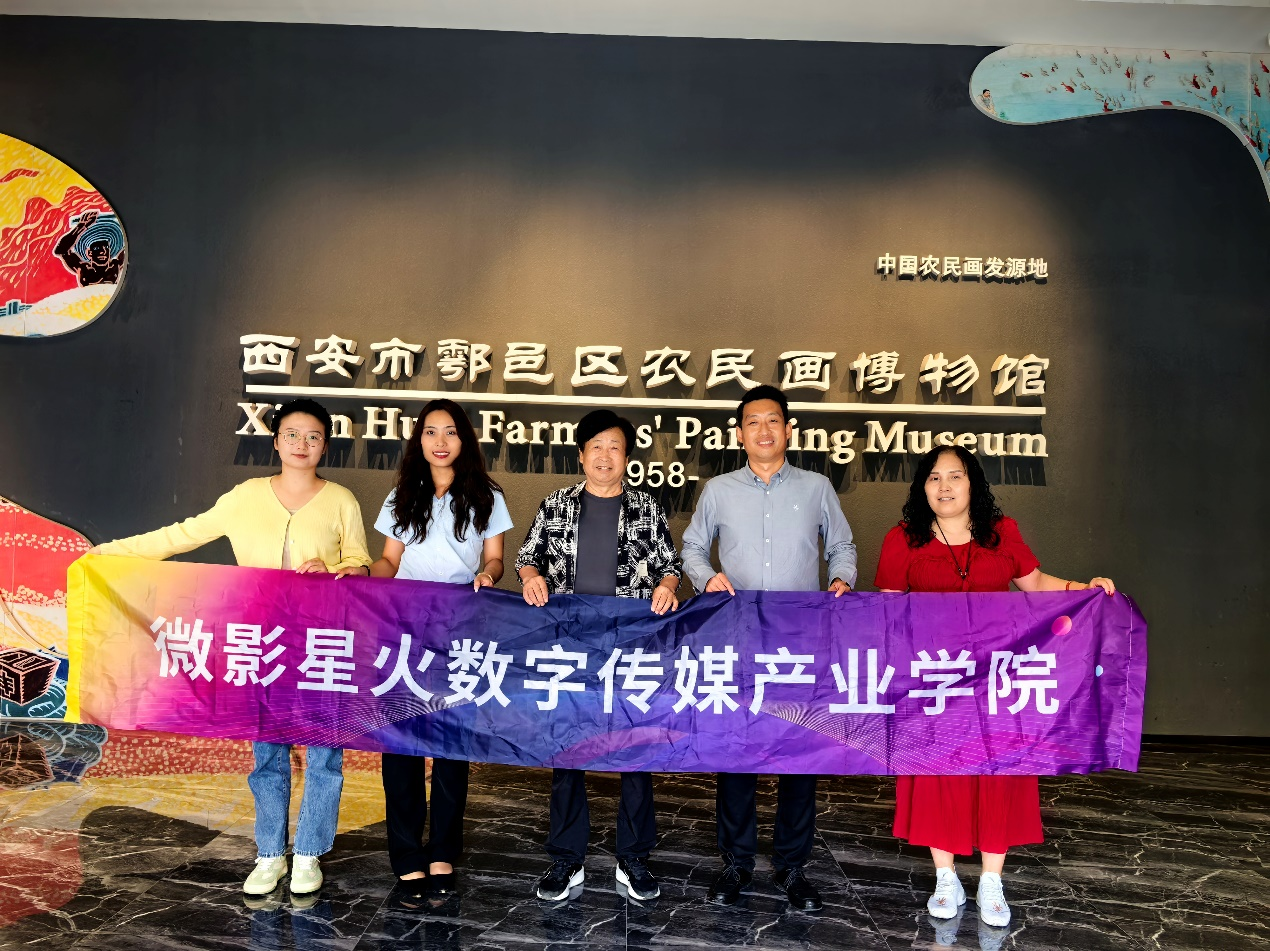 为贯彻落实教育部“访企拓岗促就业”专项行动要求,拓宽学生就业渠道,深化校企合作与文化交流,挖掘适配度高的优质资源,助力学生高质量就业,在西安工商学院微影星火数字传媒产业学院的组织下,我院产教融合与实践中心主任张欢生、院长助理王钰杰、辅导员陈钰以及学生代表一行赴西安市鄠邑区农民画博物馆进行访问交流,并就人才培养、非遗传承与就业合作等内容展开深入探讨。
