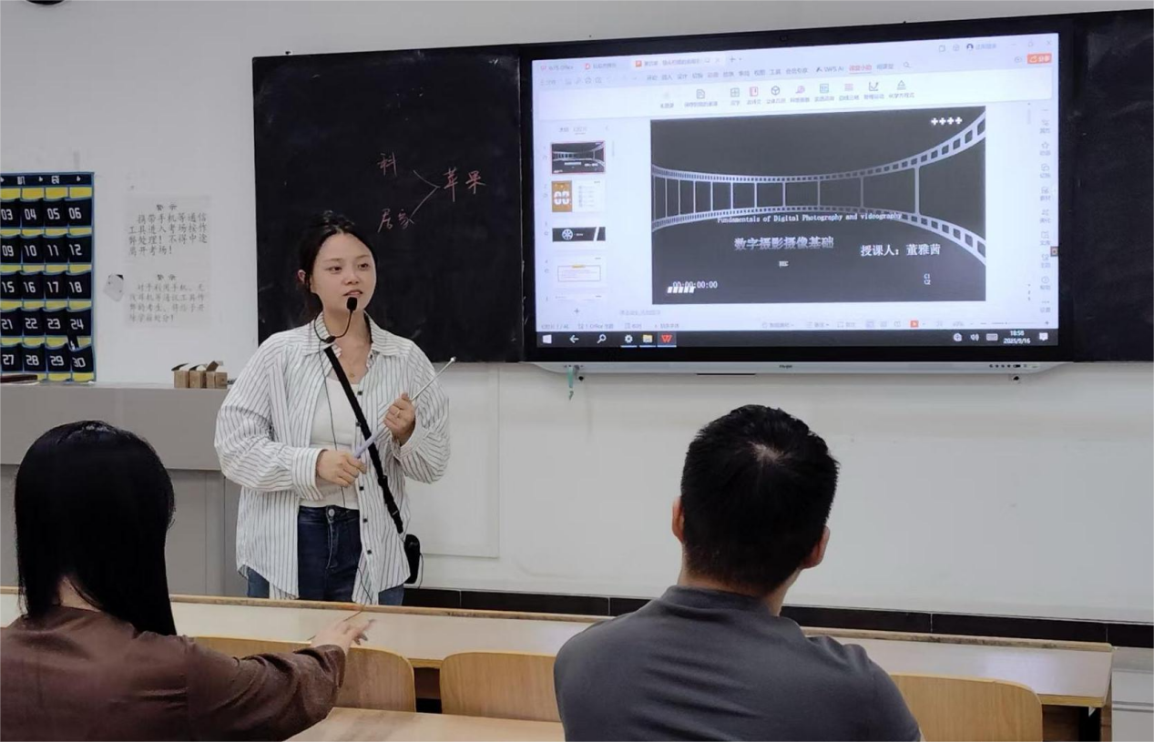 摄像课程部分聚焦于“镜头拍摄的表现手法”。新闻传播系教师董雅茜详细讲解了摄像镜头的语言艺术,包括不同景别的叙事功能与情感表达、镜头运动方式的运用技巧,强调了如何通过丰富的镜头语言增强新闻视频的视觉冲击力和故事性,使同学们对摄像创作从简单的“记录”提升到“艺术化表达”的层面。