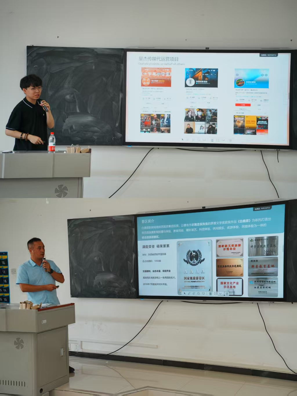 为增强2026届专科毕业生就业竞争力,西安工商学院新视域文化产业学院于9月19日下午在1-408教室成功举办了2026届毕业生岗前培训实习企业宣讲会。学院始终将毕业生就业创业工作视为重要政治任务,紧密围绕社会经济发展需求,持续优化人才培养方案,强化实践教学体系建设。此次宣讲会正是学院深化校企合作、推动学生精准就业的一项重要举措。宣讲会由产教融合与实践中心主任张欢生主持,特邀陕西星杰文化传媒有限公司人事负责人吴雨坤和陕西白鹿原旅游文化发展有限公司人事负责人姚伟超作为企业代表进行宣讲。