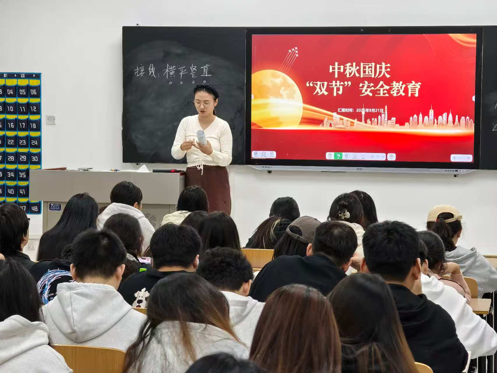 为保障学生中秋、国庆双节假期安全,厚植文化自信与爱国情怀9月21日,人文学院以晚点名为契机,组织全体学生开展双节主题教育活动,将安全提醒、文化传承与价值引领深度融合。