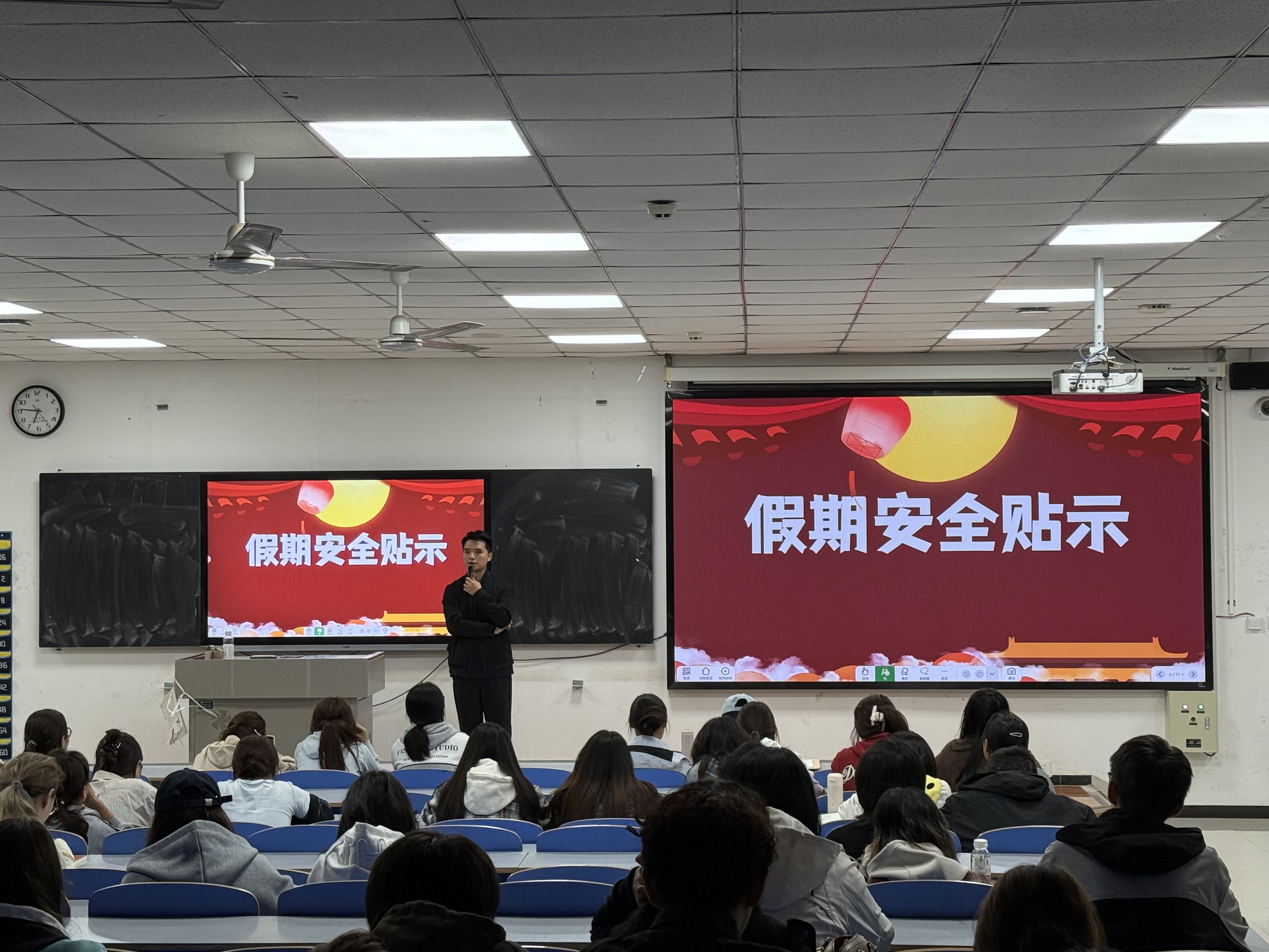 各辅导员围绕离校与留校安全、出行安全、消防安全、网络安全、饮食与健康安全五大安全维度,向学生明确要求、细致提醒: