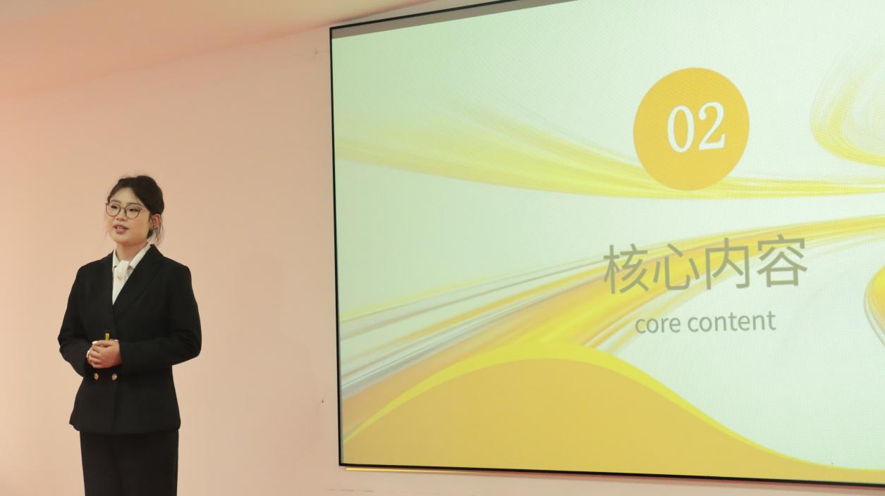 在本次“Upower”校园大使选拔活动的现场,首先由学院优秀学生代表龚陈佳欣同学分享参赛经验。她以流畅的口语、生动的语言和真挚的情感,讲述了在参加此类比赛中所收获的感悟与成长,毫无保留地传递她自身的实战技巧与心路历程,不仅为现场的参赛选手们提供了宝贵的经验,更以优秀榜样的力量激励大家在努力展示自我的道路上勇敢前进。