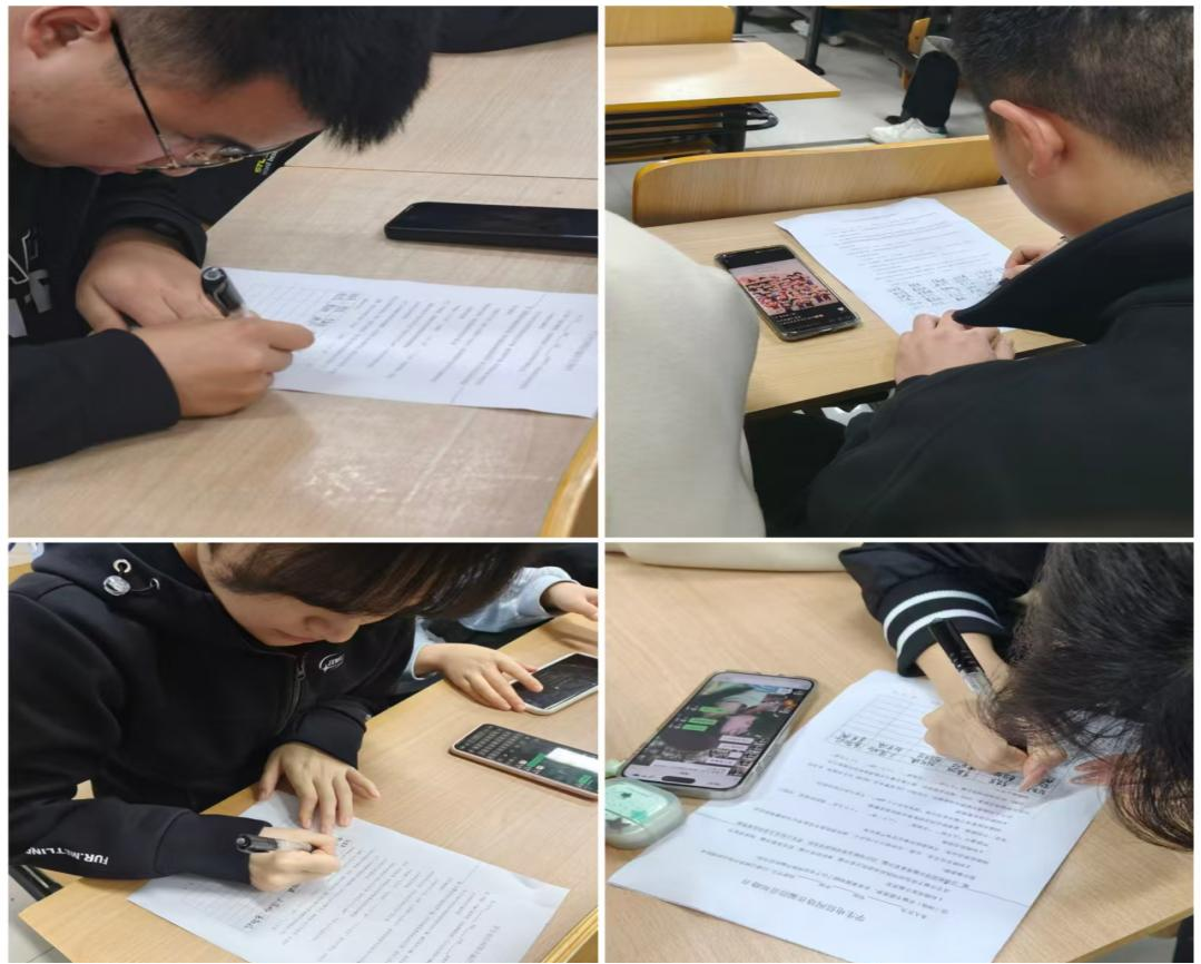 此外,辅导员还结合以往实习案例,引导学生主动思考不同场景下安全隐患的识别与应对方法,助力学生构建系统的安全防护思维。同时,针对学生普遍关注的实习协议签订要点、安全保险购买细则等疑问,辅导员进行了细致且专业的现场解答,逐一厘清学生的认知误区。最后,组织全体学生签署实习安全承诺书,以此强化学生的安全责任意识,为学生顺利开展实习工作筑牢安全防线。