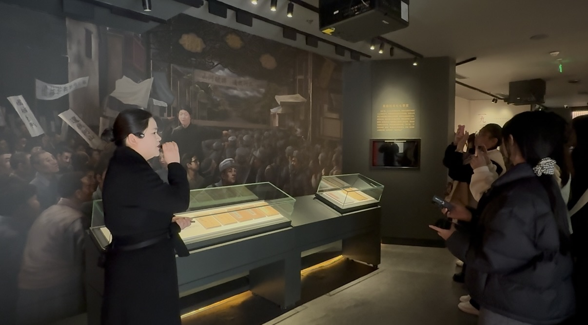 师生一行抵达易俗社,在讲解员的引导下,大家了解了易俗社的发展历史,易俗社从初创时的艰难求索到鼎盛时期的风华正茂,从战乱年代的坚守不弃到新时代的蓬勃发展,百年间的每一个重要节点都深深镌刻着“文化救国、艺术为民”的初心使命。