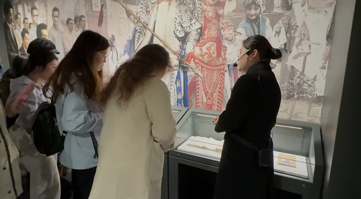在博物馆内,从古老的脸谱、戏服到珍贵的剧本手稿,一件件展品串联起秦腔从形成到发展的完整脉络。同学们在“声腔技艺展区”驻足,通过互动设备聆听秦腔不同流派的唱腔差异;在“舞台美术展区”,大家对精美的服饰道具设计赞不绝口,纷纷拿起手机记录这些凝聚匠心的艺术结晶。
