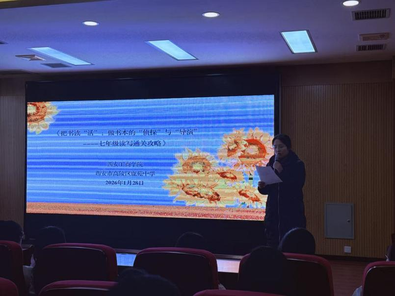 为深入贯彻落实党的二十大关于“深化全民阅读活动”的重要部署,推动高校教育资源服务地方基础教育发展,1月28日,西安工商学院新视域文化产业学院、西安工商学院人文学院中文系教师郭子嫣受邀前往西安市高陵区鹿苑中学,为该校七年级学生开展名著导读专题讲座。