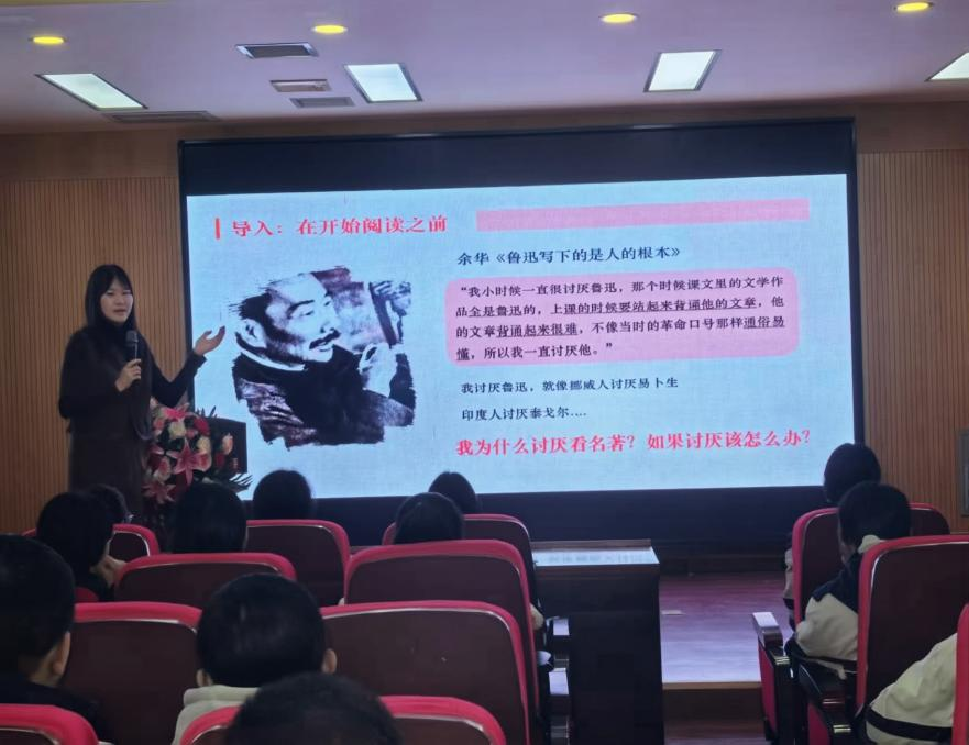 讲座中,郭子嫣老师立足七年级学生学情特点,提出“阅读三阶法”,引导学生从“怕读名著”走向“会读名著”,在阅读中学会“带着预期去探索”。在讲座中,郭子嫣老师结合《西游记》、《朝花夕拾》等教育部推荐阅读书目,详细讲解了如何通过序言、出版说明等辅助材料快速把握书籍脉络,如何通过速读和精读相结合的方式提高阅读效率。让学生深入体会名著的艺术魅力。